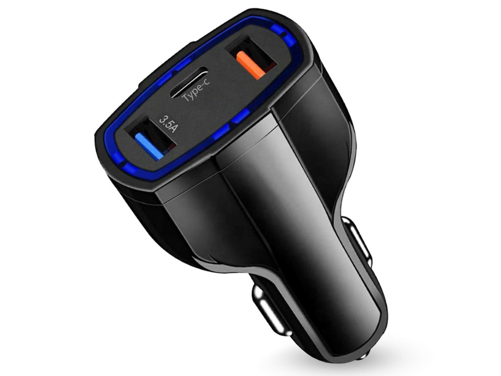 Nabíječka do auta je vybavena 2 standardními USB porty a 1 USB C portem s maximálním proudem 3,1A! Samotná nabíječka přizpůsobuje intenzitu proudu schopnostem nabíjeného zařízení, což zabraňuje poškození jeho baterie!