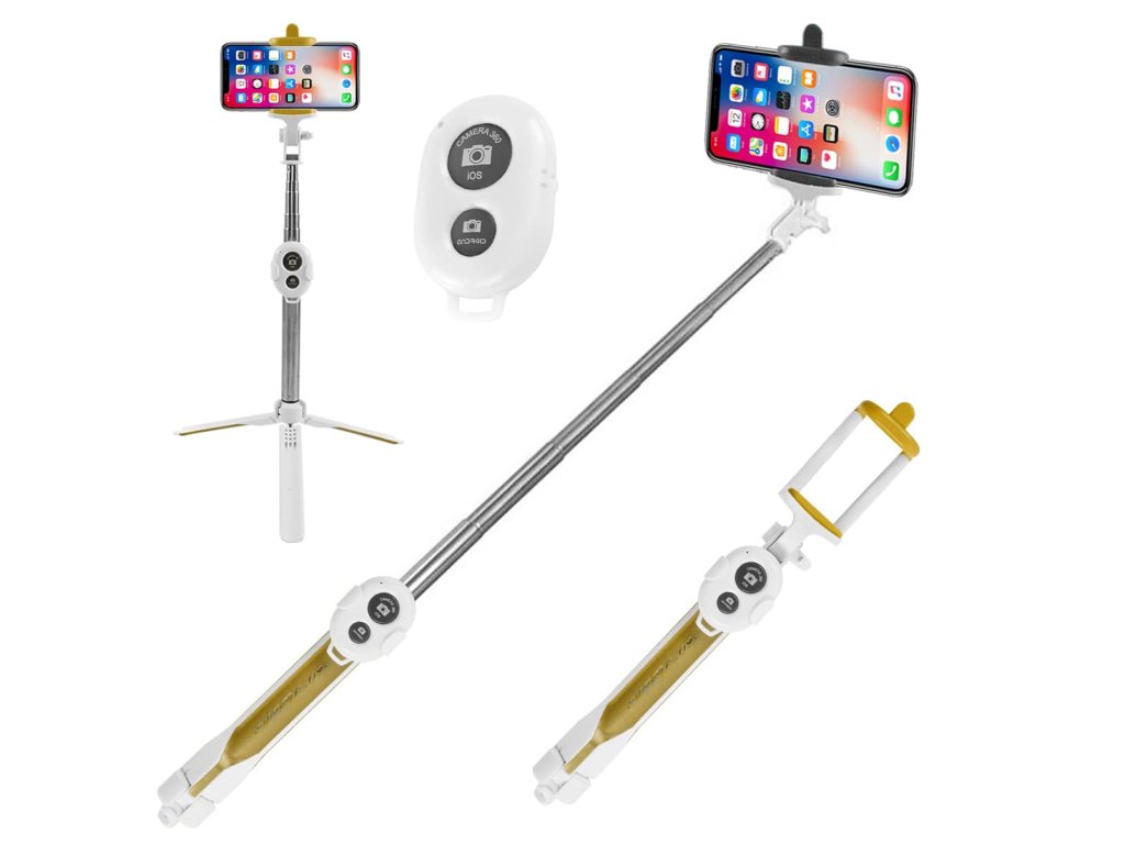 Hobby Life WB-4001 Bezdrátová selfie tyč s Bluetooth s mini stativem a dálkovým ovládáním, 18,5-67cm, bílo-zlatá