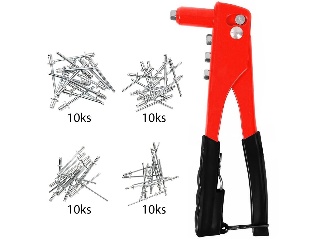 Nýtovací kleště Mӧller MR70381 jsou výborným pomocníkem v každé domácnosti i dílně. Mají všestranné využití. Pomocí nich snadno opravíte zkažené potrubí, odvzdušňovací otvory, drobnosti na autě nebo kole, nábytku, ale i zemědělském nářadí. Využijete je také při výrobě a opravě hraček, montáží hliníkových oken a dveří, upevňování jmenovek a mnohých jiných činnostech. Pružinová rukojeť umožňuje automatické vysunutí trnu a výměnné pouzdra trysky upevňují kroužek na pistoli. Snadnou manipulaci zajišťuje obrysová rukojeť s vinylovým krytem, který dodává komfort při manipulaci s kleštěmi. Úhel nýtovací hlavice je 90 °, přičemž slepé nýty průměru 2.4, 3.2, 4.0, 4.8 mm se vymění jednoduše pomocí spínače. Tyto kleště Vám umožní vytvořit množství výrobků a zlepšení ve vlastní domácí dílně.