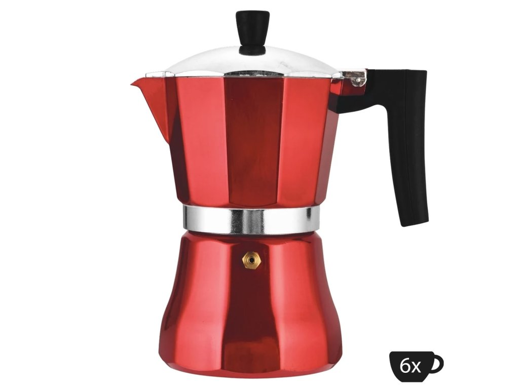 Moka kávovar 6 šálků právě teď: Přidejte do košíku a užijte si italský moka kávovar v červeném provedení!
