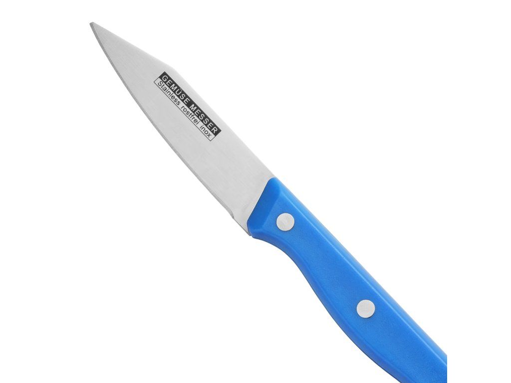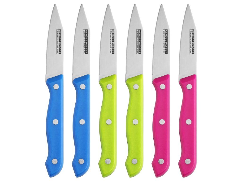 Tato 6dílná sada nožů od značky Perfect Home obsahuje 6 nožů vyrobených z kvalitní nerezové oceli s plastovou rukojetí v různých barvách. Každý nůž má délku čepele 8 cm a je určen pro každodenní použití v kuchyni – na krájení zeleniny, ovoce nebo přípravu jiných pokrmů. Balení obsahuje 6 ks nožů, které se hodí do každé domácnosti.