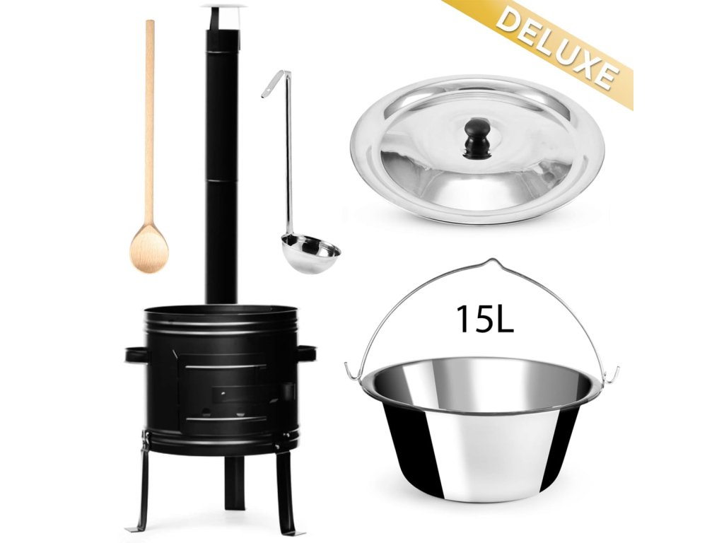 - Kotlíkový set na guláš sestává z kotliny, kotlíku, poklice, vařečky a naběračky
