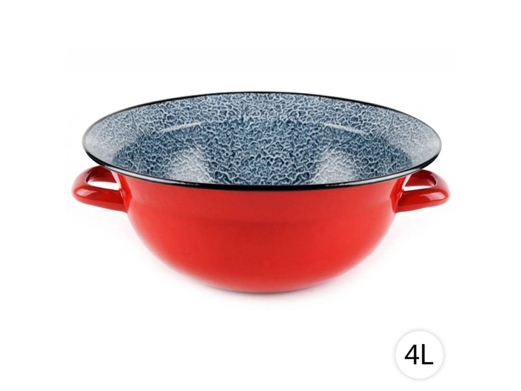 Smaltovaná mísa má 2 uši.