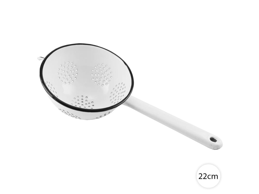 Smaltované sítko Perfect Home 14101 je praktický nástroj, který se hodí do každé kuchyně. Ideální pomocník při cezení těstovin, noků nebo škvarků na zabijačce.