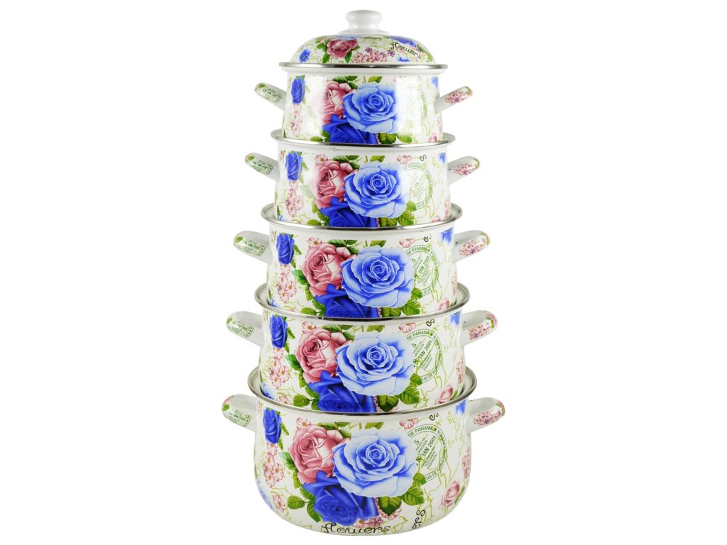 TIDAL Smaltované hrnce ROSES, 2,8/3,7/5/6,2/8L, 10ks, TD-7979